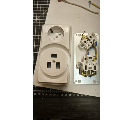 Розетки: 1 Российская розетка Systeme Electric ПРИМА 32 А + силовая 16 А 250 В RA32-211R-B. 2 Белорусская розетка Bylectrica к электроплите + 1-местная розетка с заземляющим контактом OY комбинированная БРА 32-16. Общее у российской и белорусской розетки: - одинаковое расположение розеток 32 А и 16 А, которые проводами не соединены; - обе розетки белые и низкие (42 мм); - задняя стенка выполнена в виде металлической пластины; - винты на розетке 32 А одинаково неудобно закручивать (пластмасса мешает); - толщина пластмассы примерно одинаковая. Различия: - белорусская меньше (кожух 74 против 78 мм по ширине и 145 против 165 по длине); - у российской розетки кожух крепится одним крепежным винтом, у белорусской - двумя шурупами, по одному на каждую розетку; - у российской в нижней части кожуха большое отверстие размерами 25х27 мм под подводящий кабель, у белорусской отверстия нет; - у российской розетки крепятся к металлической пластине, розетка на 16 А двумя винтами, на 32 А - винтом и заклепкой, у белорусской - розетки отштампованы вместе с пластмассовой пластиной; - крепление к задней пластине у российской - двумя винтами, у белорусской - четырьмя; - толщина контактных групп существенно больше у российской розетки; - толщина задней пластины одинакова, но у российской розетки есть крепежная скоба для подводящего кабеля, а у белорусской - квадратное отверстие в центре со стороной 25 мм. По мне российская лучше, если бы не отверстие в кожухе. Соединять розетки лучше проводом 2,5 мм2: снять изоляцию на 25 мм и загнуть колечком, сделать уточку т. к. пластмассовый бортик мешает, под винт d5 подложить шайбу, шайбы гровера из розетки можно убрать. Вилки 1 Угловая вилка Bylectrica 32 A 2К+3, В32-071. 2 Вилка ВШ REXANT 32 A, 250 В, 2Р+РЕ белая 11-8931. 3 Вилка для кухонных плит разъем РШ-ВШ 32 А 250 В, 2Р+РЕ карболитовая белая EKF. 4 Вилка разборная для плиты ВП плIO-OI- Ст с заземляющим контактом 32 А белая IEK. Все розетки имеют сходную конструкцию, белорусская Bylectrica единственная имеет заостренные медные контактные пластины, у остальных - стальные и тупые, у розетки TDM ВШ они еще и короткие (14 мм).