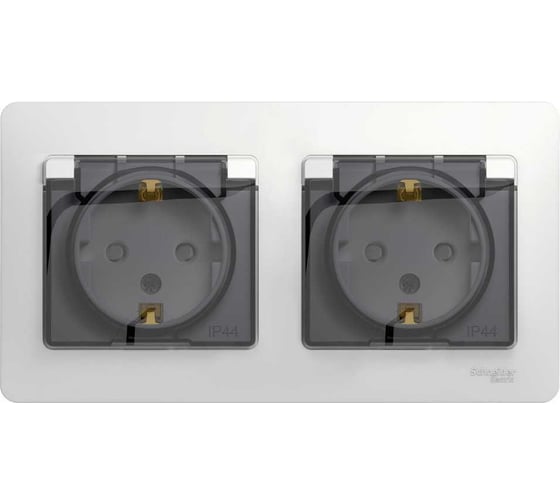 Розетка двойная Systeme Electric GLOSSA PRO с заземляющим контактом, с крышкой, со шторками, в сборе, IP44, без лапок, белый GSL000147RUR