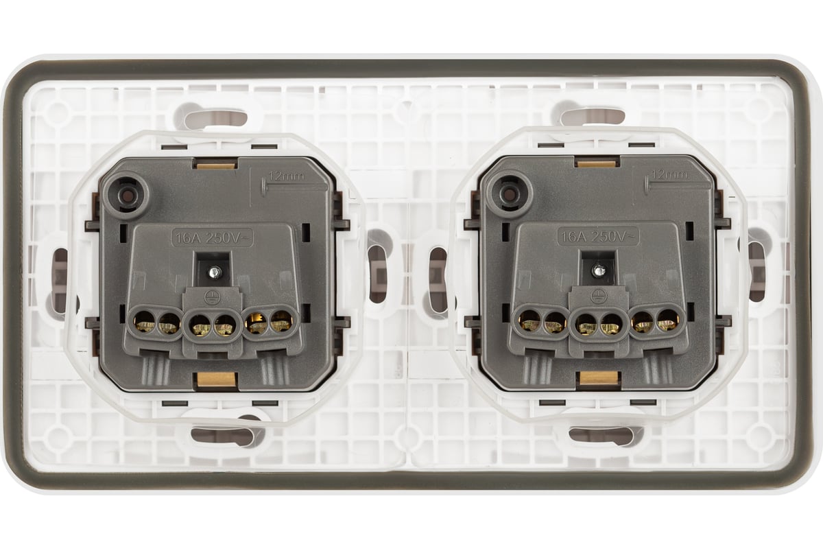 Розетка двойная горизонтальная IP55 серии Эра Эксперт скрытой установки цвет белый 11-2523-01. Номинальные характеристики 16А, 250В. Устройство выполнено из качественного поликарбоната, оснащено уникальными винтовыми клеммами ЭКСПЕРТ для максимально качественного зажима кабеля в механизме.