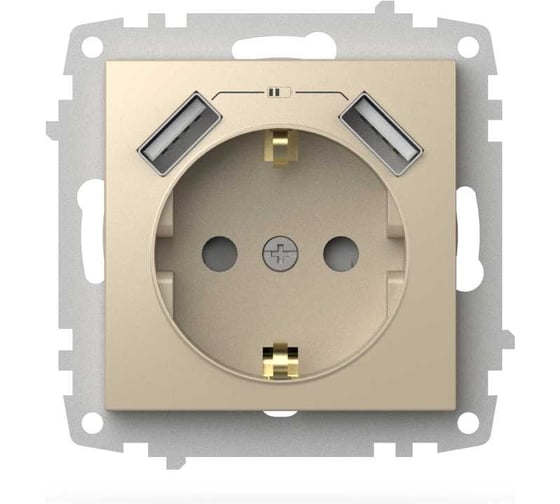 Розетка ELBI Zena Vega слоновая кость, два входа USB для заряда устройства, с заземлением, защита от детей M+K 609-012500-317