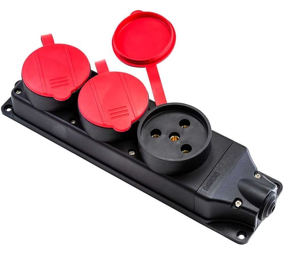 Розетка Emas в резиновом корпусе, трёхместная 3 x (3 x 25)A, настенное крепление EKS325PG30