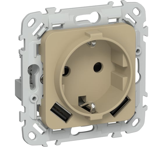 Розетка IEK FLITE с заземляющим контактом и шторками, 16А USB AA 3,1А б/к РСЮша11-1-ФлХ хаки FI-R14-16-1-U21-D31-K59