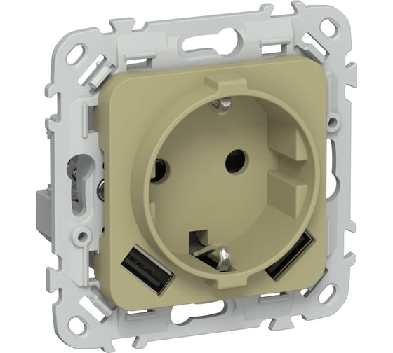 Розетка IEK FLITE с заземляющим контактом и шторками, 16А USB AA 3,1А б/к РСЮша11-1-ФлО оливковый FI-R14-16-1-U21-D31-K26