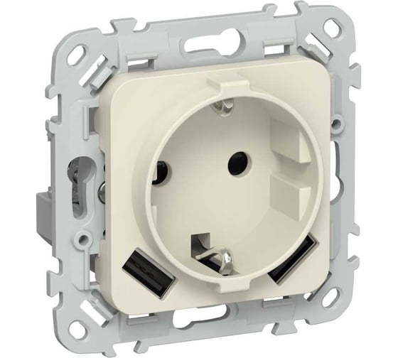 Розетка IEK FLITE с заземляющим контактом и шторками, 16А USB AA 3,1А б/к РСЮша11-1-ФлСл сливочный FI-R14-16-1-U21-D31-K86