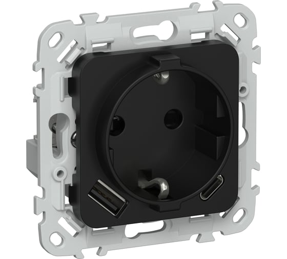 Розетка IEK FLITE с заземляющим контактом и шторками, 16А USB AC 20Вт б/к РСЮшс11-1-ФлЧ черный FI-R14-16-1-U22-020-K02