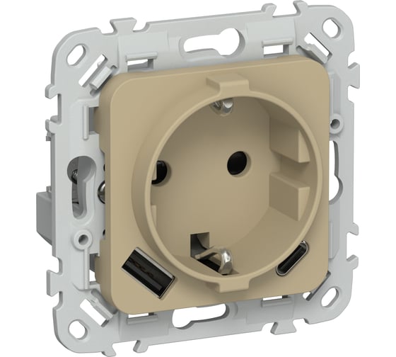 Розетка IEK FLITE с заземляющим контактом и шторками, 16А USB AC 20Вт б/к РСЮшс11-1-ФлХ хаки FI-R14-16-1-U22-020-K59