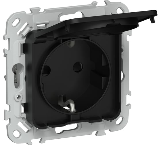 Розетка IEK FLITE с заземляющим контактом, шторками и крышкой, б/к 16А IP44 РСшкр11-1-44-ФлЧ черный FI-R16-16-1-44-K02