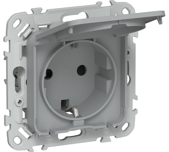 Розетка IEK FLITE с заземляющим контактом, шторками и крышкой, б/к 16А IP44 РСшкр11-1-44-ФлС серый FI-R16-16-1-44-K03