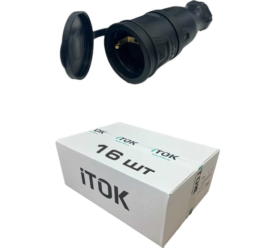 Розетка каучуковая iTOK iCONNECT с защитной крышкой и заземлением 16А IP44 (модель РК) цвет черный, комплект 16 шт i-KI-KR-ICONNECT-1PEN-IP44-BLACK-16