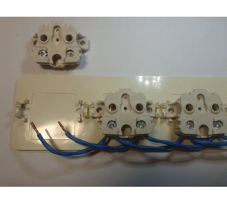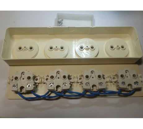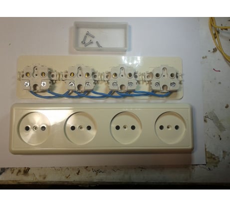 Неудачная конструкция. Розетка представляет собой набор из четырёх обычных одинарных розеток на общей основе, соединённых между собой перемычками. Перемычки из тоненького многожильного проводочка (по ощущениям хорошо если 0,75 кв.мм, а то и вообще 0,5 кв.мм), не обжатого наконечниками. Невозможно подключение толстой жилы (в моём случае 2,5 кв.мм), т.к. подключаемая жила и перемычка не зажимаются одновременно (там один винт с площадкой). Переделал сам перемычки - всё, конечно, работает. Но стОит ли покупать товар, чтоб потом его "допиливать напильником"...