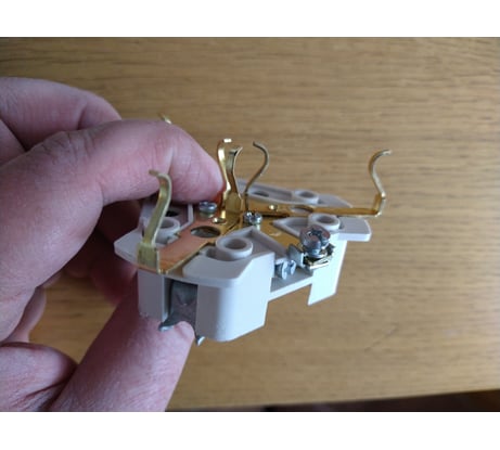 Для работы электроинструментом и сваркой розетки слабые. Усилил тонкие места латунных пластинок внутри припояв по длине медный провод 2*1.5 мм2.
