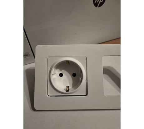После установки на место неприятно удивило, что эта розетка в самопальной упаковке не совместима с фирменной же рамкой. Вот буквально на миллиметр розетка больше, поэтому рамка не налазит. Пришлось искать розетку в обычном строймаге. К ней рамка подошла.