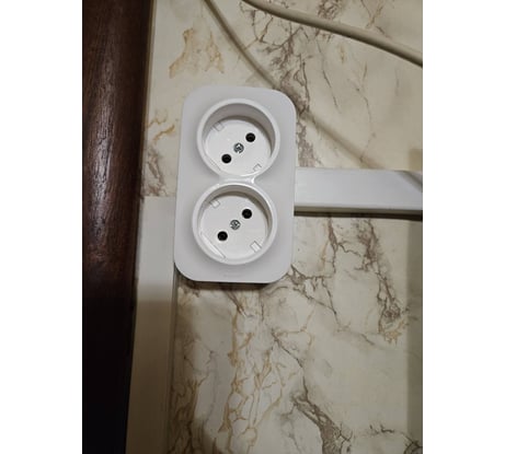 Накладная розетка без заземления. Гнёзда в розетке объеденены внутри пластикового основания.