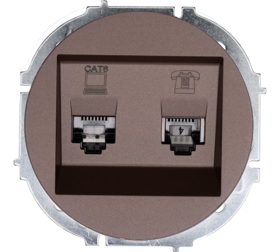 Розетка компьютер+телефон с модулем Cat 6 Lezard OSEN шоколад 743-7388-144