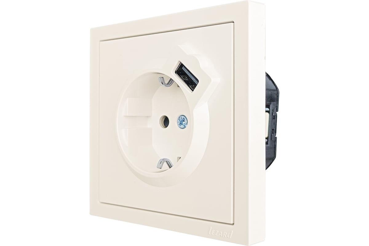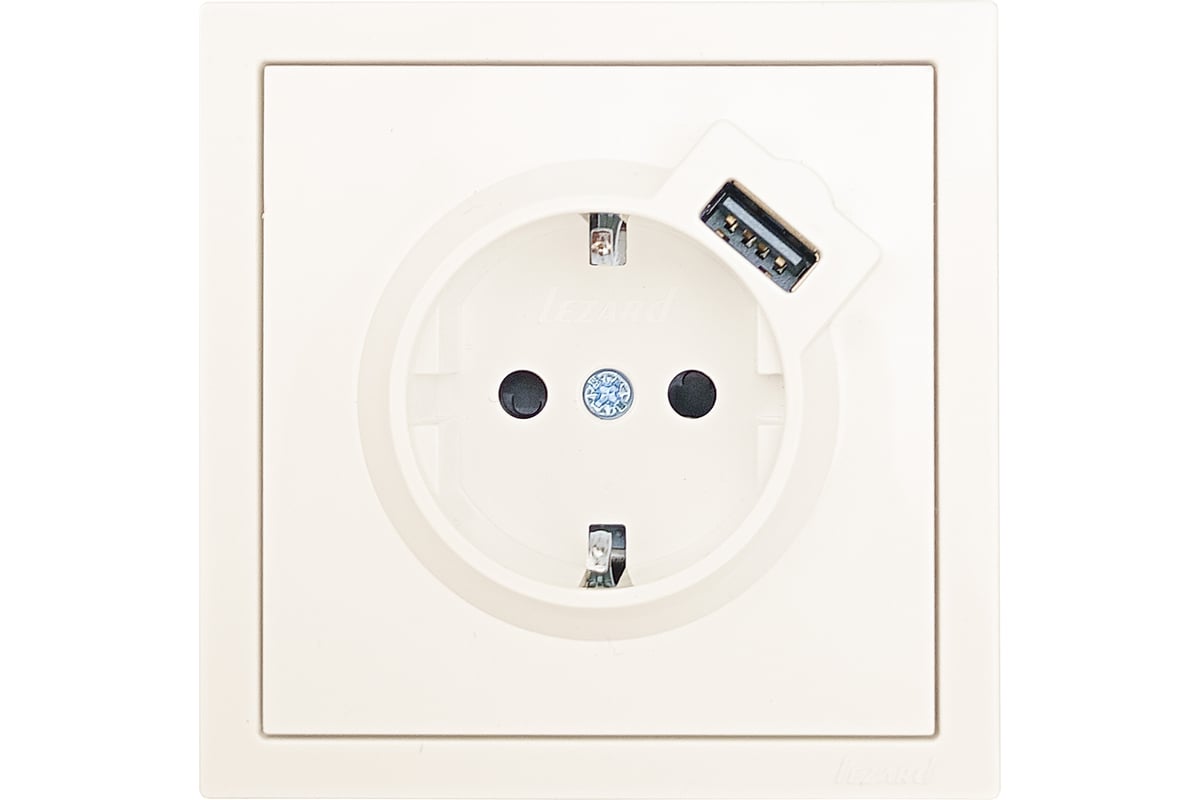 Розетка Lezard ZIMA с заземлением + USB разъем, слоновая кость 704-9088-181