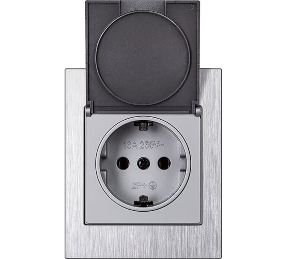 Розетка одноместная SMARTBUY с заземлением с крышкой модульная 16А алюминий серебро Альтаир SBE-m11al-16-S1-1ZK