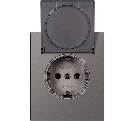Розетка одноместная SMARTBUY с заземлением с крышкой модульная 16А графит Альтаир SBE-m11g-16-S1-1ZK