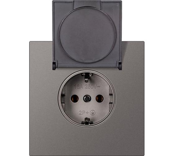 Розетка одноместная SMARTBUY с заземлением с крышкой независимая 16А графит Альтаир SBE-i11g-16-S1-1ZK