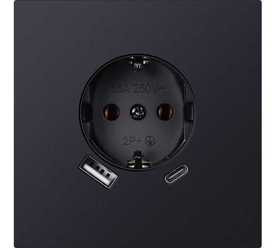 Розетка одноместная SMARTBUY с заземлением USB+Type-C независимая 16А черная акрил Альтаир SBE-i11ba-16-S1-USB