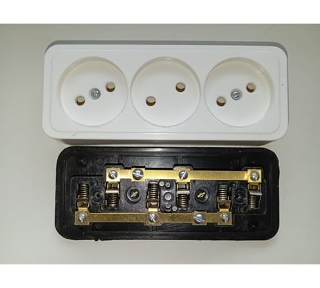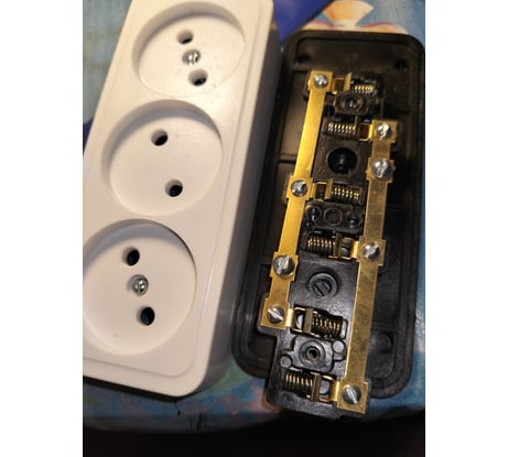 Каждый контакт у розетки подпружинен, не прослабнет от евро вилок. Основание из термореактивной пластмассы, не расплавится при нагреве, нижняя черная крышка - реактопласт, не расколится при падении.