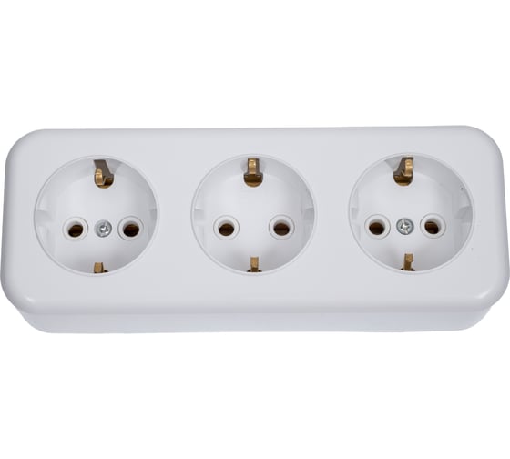 Розетка ООО "ОПТИКОМ ЭЛЕКТРИК" RA 16-343 трехместная с заземляющим контактом открытой установки, цвет белый 400215.00551.2