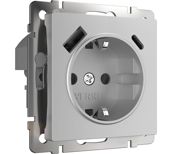 Розетка с заземлением, шторками и USB тип A+C W1171706 серебряный WERKEL a067703