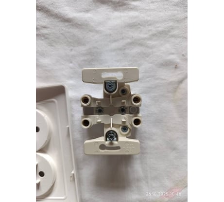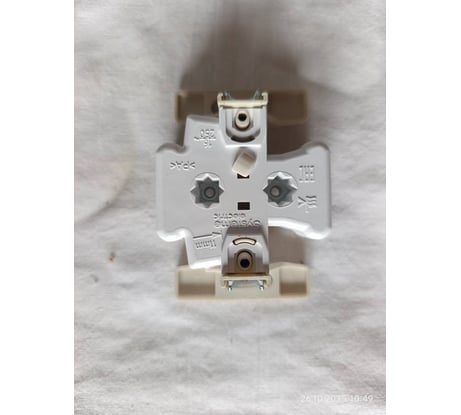 Только пластик. Нет никакой стальной рамы, к которой крепится механизм. Конструкция кажется хлипкой, хотя на деле всё же достаточно прочная. Но я всё же умудрился сломать. Механизм был смонтировал в подрозетник на распорках. Я пытался затянуть винты, зажимающие контакты. Вся конструкция при этом чувствует себя достаточно неустойчиво, "плавает". Я приложил усилий чуть больше и вот что произошло, смотрите на фото. Сломалась защёлки-крепление и одна часть механизма чуть искривилась. Защёлка осталась внутри механизма. Потом я её вытащил пинцетом, но кривизна до конца не ушла. Нет отверстий для крепления шурупами к стене. Для старых подрозетник в со слизаны и рёбрами крепления на распорках это критично, просто не держится нормально.