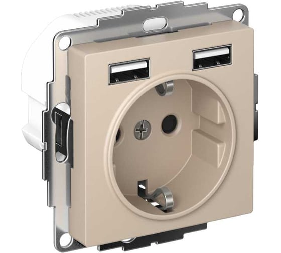 Розетка Systeme Electric Atlasdesign песочный 16А c 2 usb a+a, 5В/2,4А, 2x5В/1,2А ATN001230