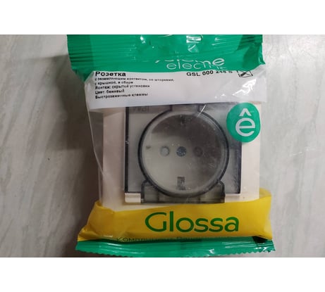 Механизм с быстрозажимными клеммами Systeme Electric (ранее Schneider Electric) серии Glossa (цвет бежевый) розетки IP44 с заземлением со шторками и крышкой.