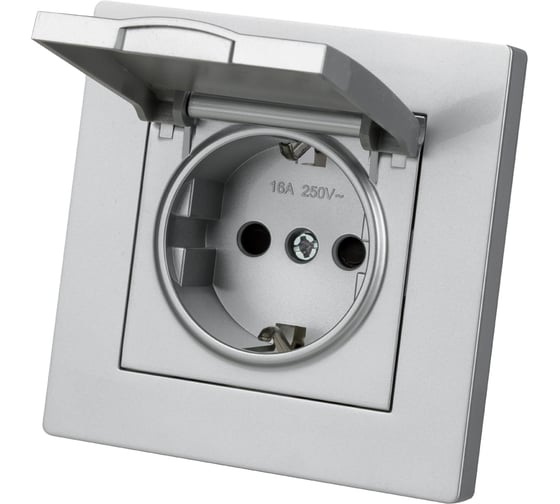 Розетка TDM ELECTRIC 2п+з 16А 250В ip44 с защитными шторками с крышкой серебр. металлик "сенеж" SQ1816-0239