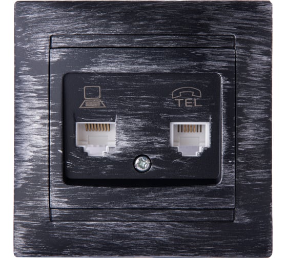 Розетка телефонная RJ11 + компьютерная RJ45 TDM ELECTRIC старинное серебро, серия "Лама" SQ1815-0660