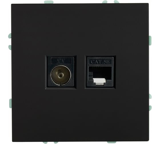 Розетка TV + компьютерная RJ-45 (механизм) STEKKER RST00-5106-05, серия Эмили, черный уголь, soft touch, 49846