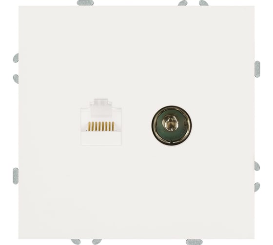 Розетка TV + компьютерная RJ-45 (механизм) STEKKER серия Эмили, RST00-5106-01, белый фарфор, soft touch, 49872