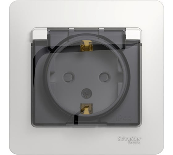 Розетка в сборе Systeme Electric GLOSSA PRO с заземлением со шторками с крышкой, 16А, IP44, в сборе,белый GSL000148RU
