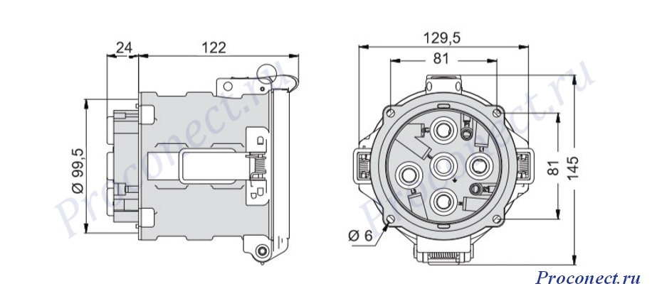 Панельная встраиваемая розетка Proconect 3PS9D3OE01 рассчитана на номинальный ток 150А и напряжение 380-440 В. Она имеет контактную группу 3P+E. Максимальное сечение одножильного провода составляет 70 мм², максимальное сечение многожильного провода 50 мм². Степень защиты IP66/67 гарантирует вам хорошую износостойкость оборудования. Все промышленные разъёмы Proconect 3PS125 соответствуют стандартам IEC 60 309 - 1, IEC 60 947-3, IEC 60 529, Décret № 88-1056. Вес розетки 3PS9D3OE01 составляет 1,5 кг.