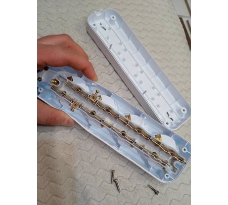 Тонкий хлипкий пластик, щель сквозная в соединении верхней и нижней частей. Возможно, прислали не то, т.к. отличается от фото товара. Сдать обратно не было тех. возможности. Осматривайте и ощупывайте при получении.