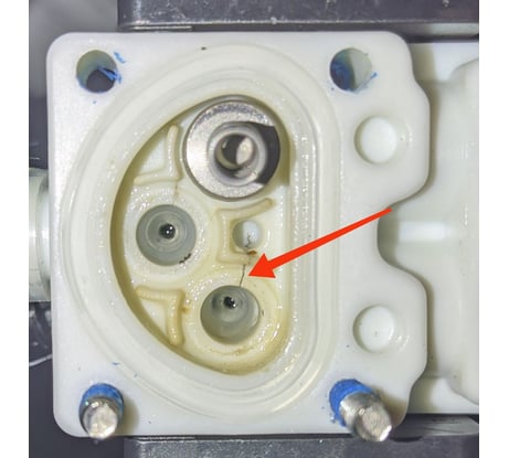 Кофеварка без поломок прослужила чуть меньше года. При приготовлении кофе, стал протекать капучинатор. Дальше воды через капучинатор стало вытекать больше и больше. Вскрытие показало, в блоке клапанов появилась трещина, которая увеличивалась со временем.