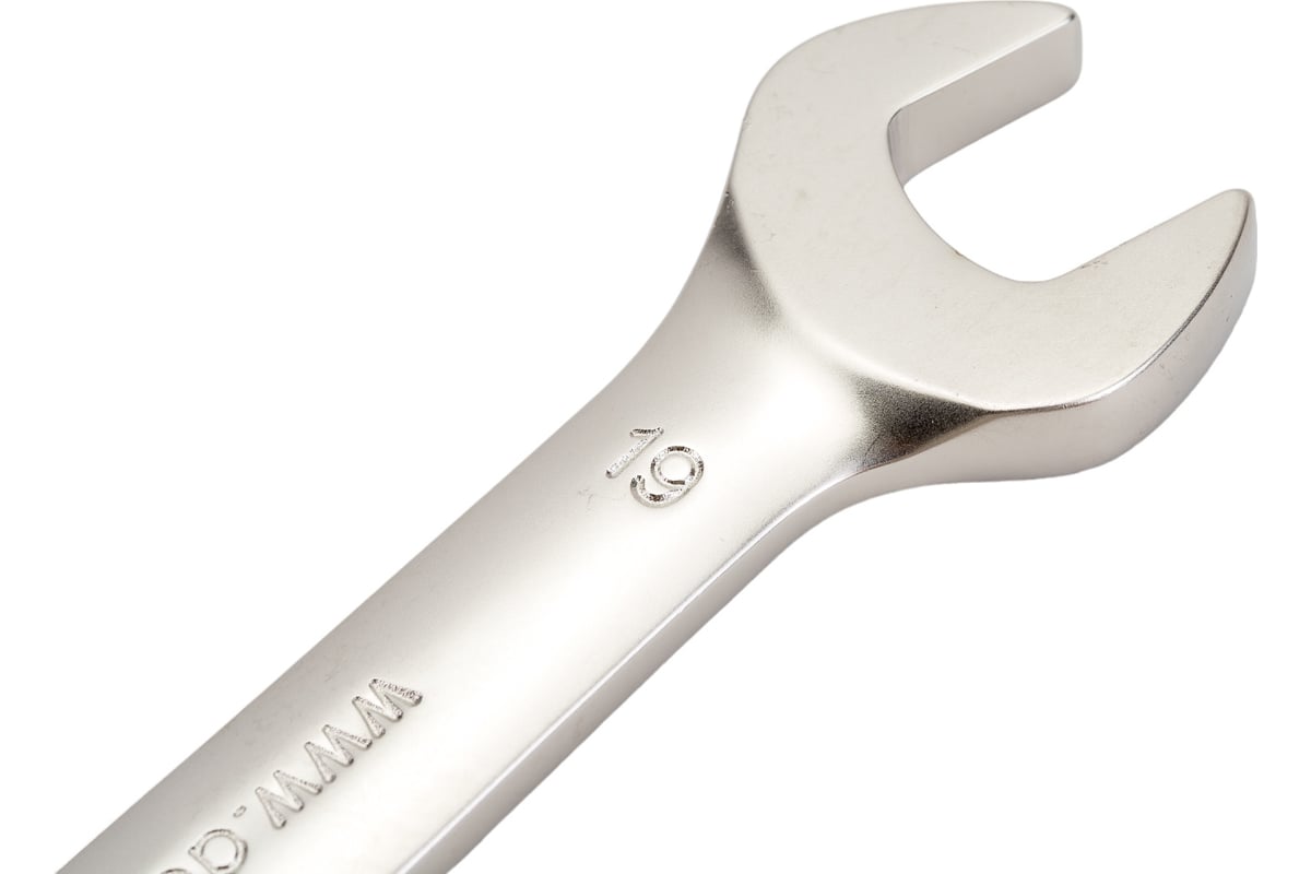 Рожковый ключ Дело Техники 19x22 мм 510229 применяется для самых разнообразных работ. Открытый зев дает возможность работы в том случае, когда доступ к крепежу возможен лишь с одной стороны. При работе рожковый профиль оставляет крепежную деталь открытой для обзора. Угол наклона рожковой части относительно продольной оси тела ключа — 15°, что позволяет довести минимальный угловой шаг при работе в труднодоступных местах до 30°.Ключ выполнен из качественной стали 6140CrV с твердостью 44-48 HRC. Никелированное покрытие обеспечивает защиту от коррозии и долгий срок службы.