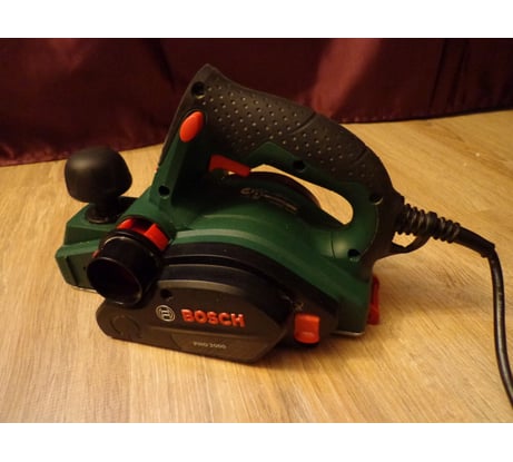 Качество Bosch. В руке удобно лежит. Подпятник на подошве - можно ставить рубанок на подошву сразу после работы не опасаясь повреждения поверхности или строгальных ножей.