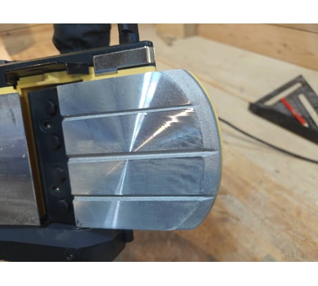 Функционал рубанка предусматривает возможность выборки четверти в диапазоне до 15,5мм, а направляющие пазы на подошве позволяют снимать фаску.
