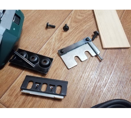 1. Настройка ножей. В комплекте есть шаблон, но оказалось, что он тоже требует настройки; 2. В целом сам шаблон не сильный помощник, так как ножи, всё равно гуляют при установке; 3. Регулировка глубины строгания не имеет ограничения, так передняя подошва может просто вывалиться из своей посадки; 4. Плоскости подошв, передней и задней, не совпадают; 5. Из коробки требует настройки ножей, так как в конце оставляет выборку, как на рейсмусе.