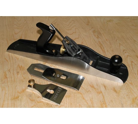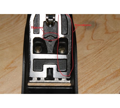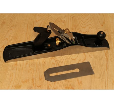 Рубанком "из коробки" нельзя работать, даже заточив нож. Лягушка кривая настолько, что нож не выставить параллельно подошве. Стружколом без доработки не подходит к рубанку.