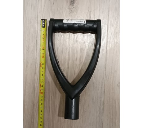 Общая длина рукоятки - 26 см, от ручки до развилки -17см, ширина рукоятки 13 см снаружи и 11см внутри( на месте хвата). Для удобства использования сделаны специальные наплывы под хват. Глубина отверстия под черенок - 8 см, диаметр -32, 5 мм. Имеет лёгкий запах ощущаемый лишь когда подносишь очень близко в носу( не как ящики овощные))) )