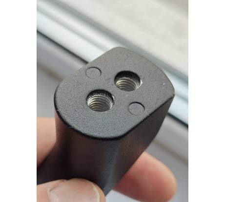 Нет достаточной информации по размерам крепежа в карточке сайта. Снизу три отверсти: два с широкой стороны рукояти и одно с более узкой, глубина отверстия 20 мм, глубина резьбы ≈18. Алюминий, покрашено качественно, резьба сделана качественно, дизайн соответствует стране, не "китай", лаконично но качественно. Покупалось для установки на чугунную ванну(не совсем подходит для этого, больше подойтет для улицы), хват удобный, размеры компактные. Крепеж отсутвует.