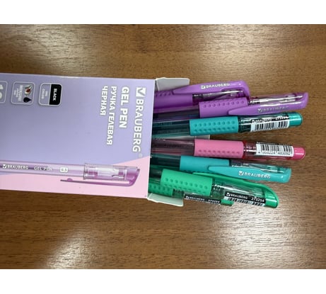 Набор ручек гелевых BRAUBERG с грипом, кросс-серия PASTEL, черная, корпус в ассортименте, 12 шт, линия 0,35 мм 273254