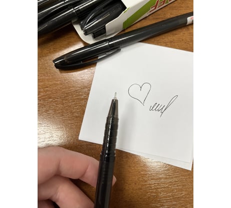 Очень нравитсятонкий наконечник. Пишит идеально, удобно держать в руке ручку.