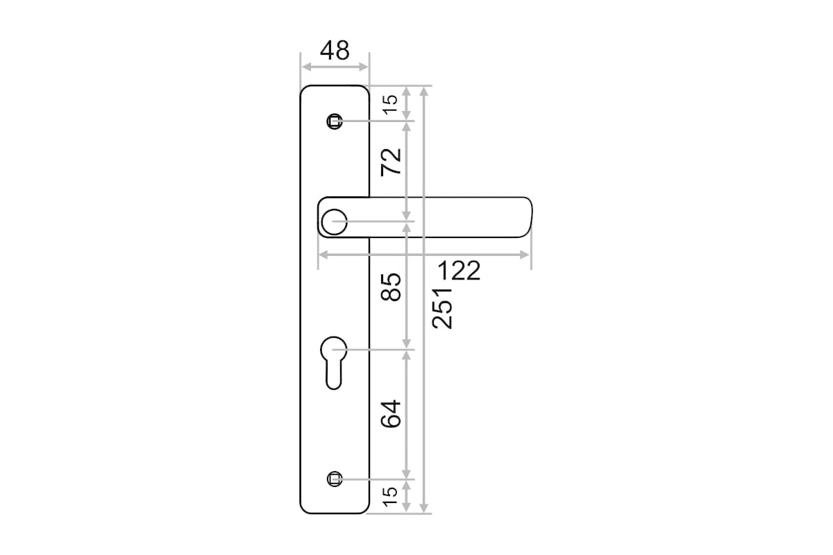 Комплект ручек на планке Vrata предназначен для установки на межкомнатные и входные двери с корпусом замка под цилиндр (межосевое расстояние 85 мм). В комплект входят две ручки на планке, крепеж. Материал ручки - сплав алюминия, материал планки - сталь. Механизм - усиленная пружина с повышенным ресурсом работы из стали. Покрытие ручки и планки - многослойное гальваническое.