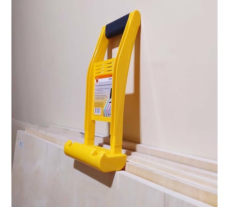 Ручка-переноска для гипсокартона Энкор 51680 служит для удобной переноски листов из гипсокартона. Модель надежно фиксирует лист или плиту во время перемещения по рабочей площадке. Приспособление широко применяется в строительстве или при проведении ремонтных работ.