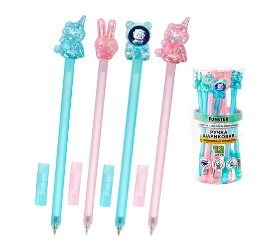Ручка с акриловым топпером шариковая FUNSTER "ACRYL MIX" – это надежный пишущий инструмент и очаровательный аксессуар. Ручка поможет в ведении записей, а забавные акриловые фигурки станут настоящими талисманами в ежедневных делах.