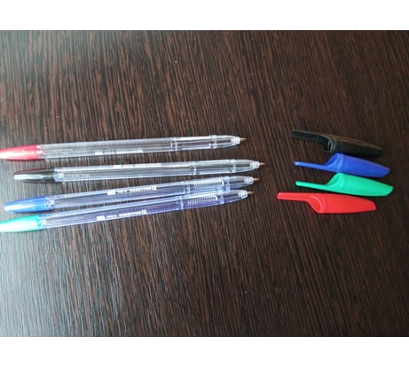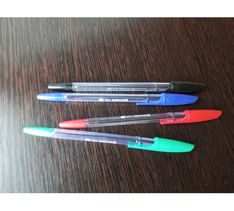 В наборе 4 ручки разных цветов: синяя, красная, зеленая и черная. Пишут ручки хорошо: мягко, плавно, бумагу не царапают.